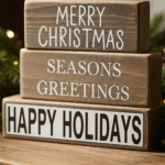 Simple wood blocks with holiday wording sell quickly.