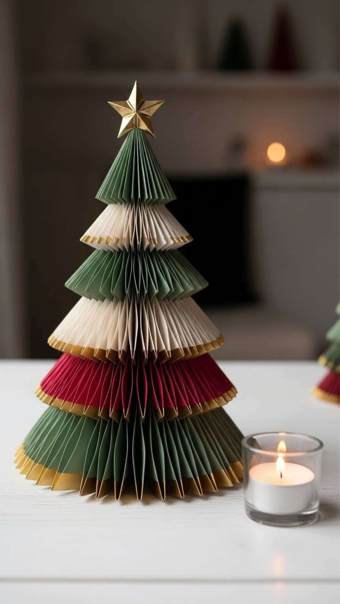 Folded or layered paper trees are lightweight and perfect for small spaces.