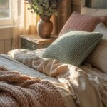 Try this: Mix a ruffled linen duvet cover with crochet pillowcases and a chunky knit throw for instant vintage comfort.