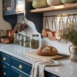 The kitchen is the soul of any cottage-style home. Opt for open shelving, stoneware, and wood cutting boards to bring warmth and function together.