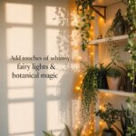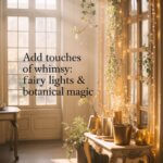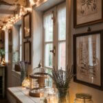 Cottagecore decor often includes small, magical details — fairy lights, framed botanical prints, or vintage birdcages.