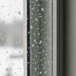 Thin white or light gray branches creeping in from the corner of the window create a peaceful, forest-edge feeling. Less is more here.