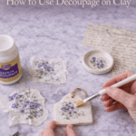 Decoupage is another wonderful beginner-friendly embellishment technique. It lets you apply patterned paper, tissue, napkins, rice paper, or printed designs onto finished clay surfaces using a decoupage medium. This is ideal for makers who want to create clay pieces with floral prints, vintage illustrations, labels, botanical art, or cottage-style details without painting them by hand.