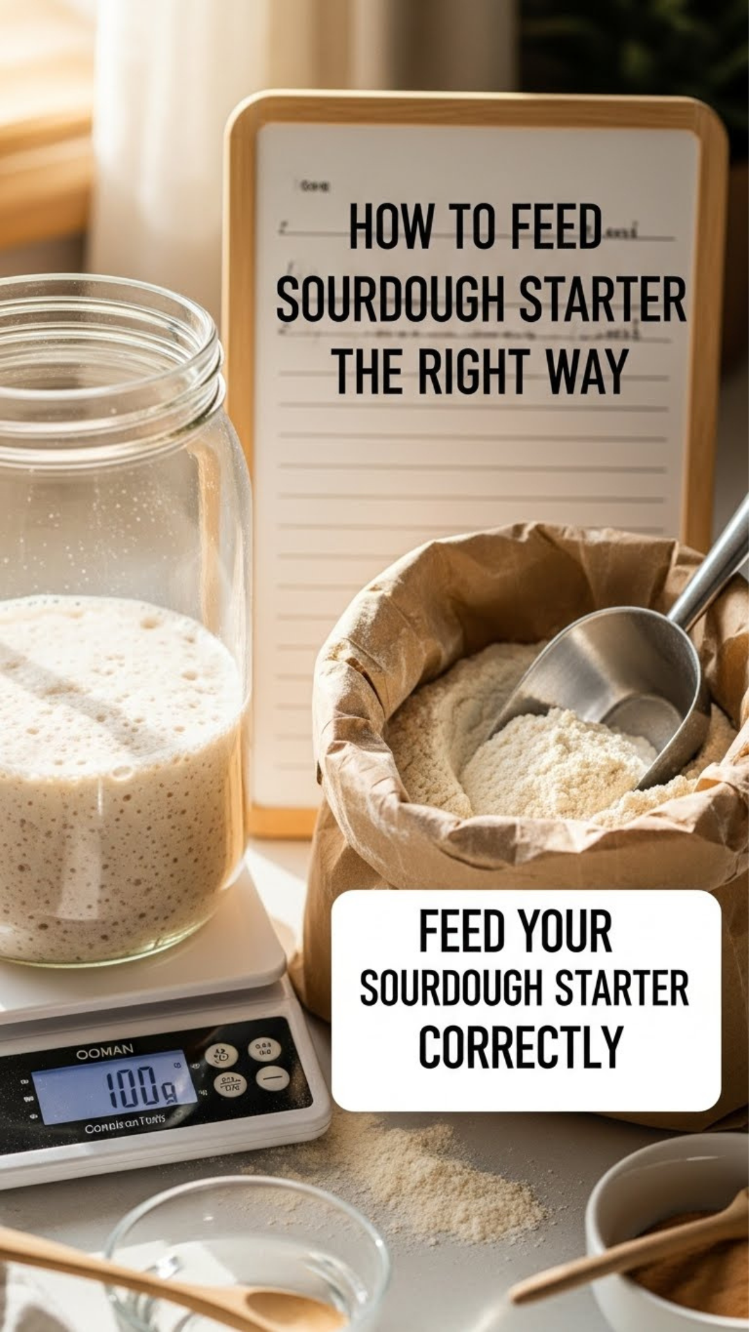 A healthy starter needs consistent feeding. Here’s the easiest method: