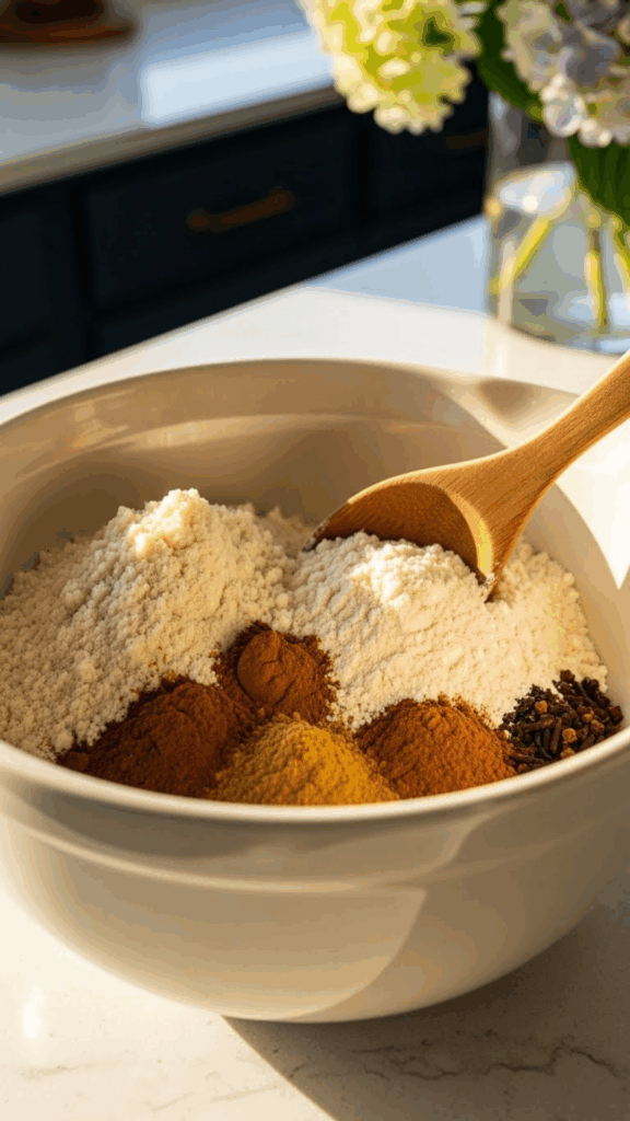 In a medium bowl, whisk together almond flour, oat flour, spices, baking soda, and salt.