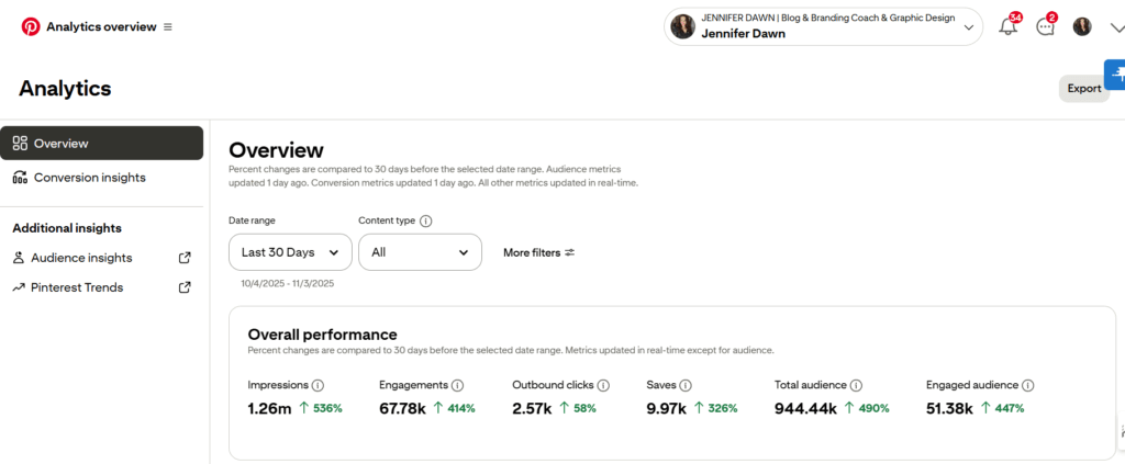 When I implemented this system, I stopped overthinking and started publishing. Within weeks, my Pinterest analytics skyrocketed — thousands of saves, outbound clicks, and consistent blog traffic. Not to mention increased sales!