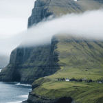 Remote Nordic islands with foggy cliffs, turf-roof cottages, and black-sand beaches that look straight out of folklore